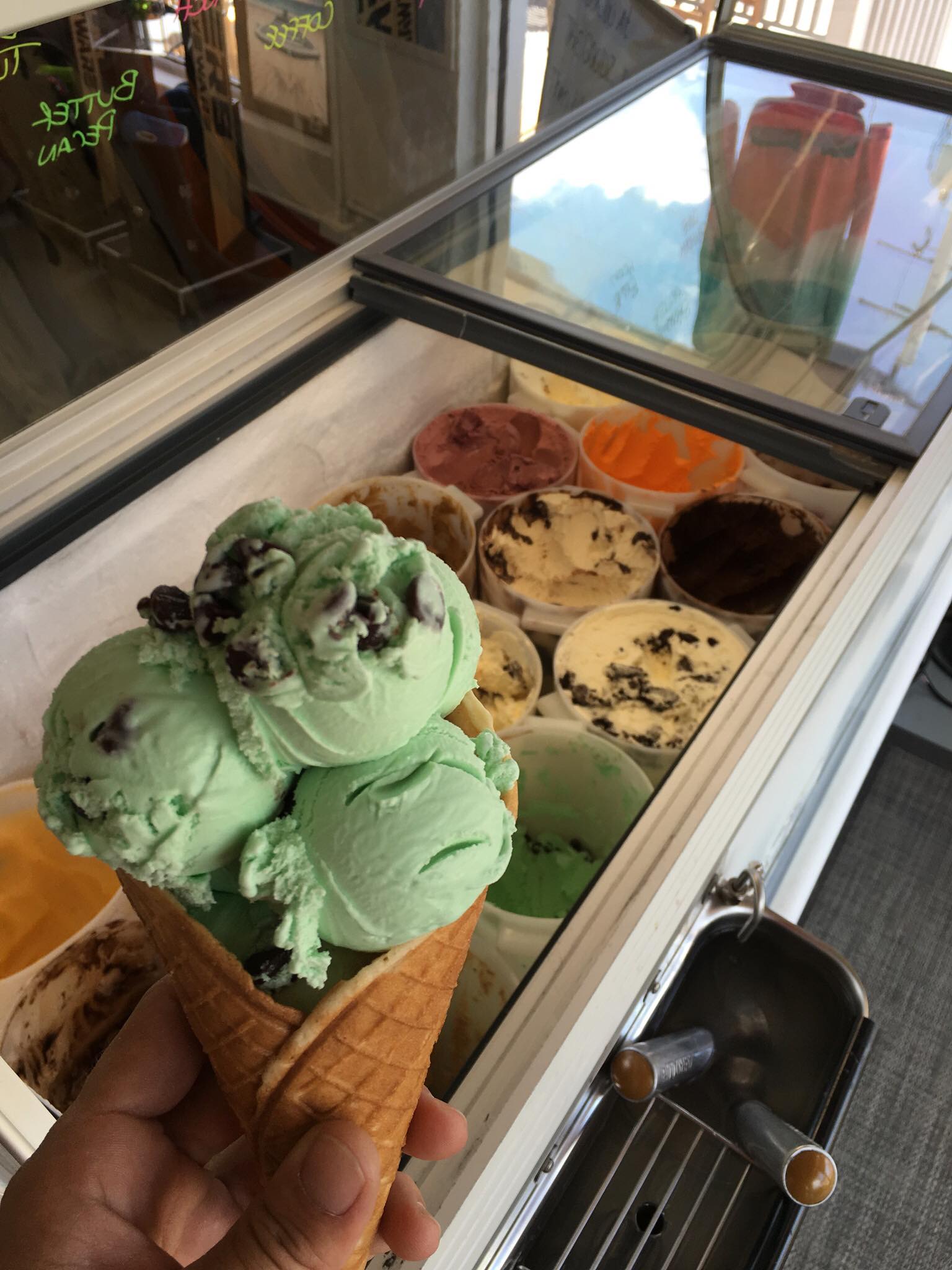 Buy one scoop, get the second half-off, every weekday from 2–4 PM.